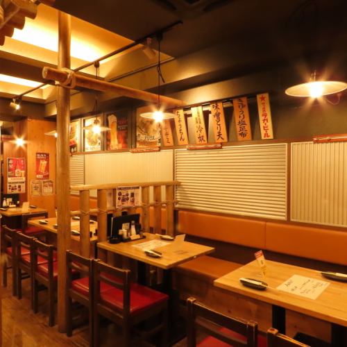 The interior of the store has an old-fashioned atmosphere, with wooden decor and soft lighting creating a comfortable space.The table seats can flexibly accommodate small to large groups, and have partitions to ensure a great sense of privacy.From a drink after work to a lively banquet, you can relax and enjoy a blissful time while enjoying our specialty dishes.